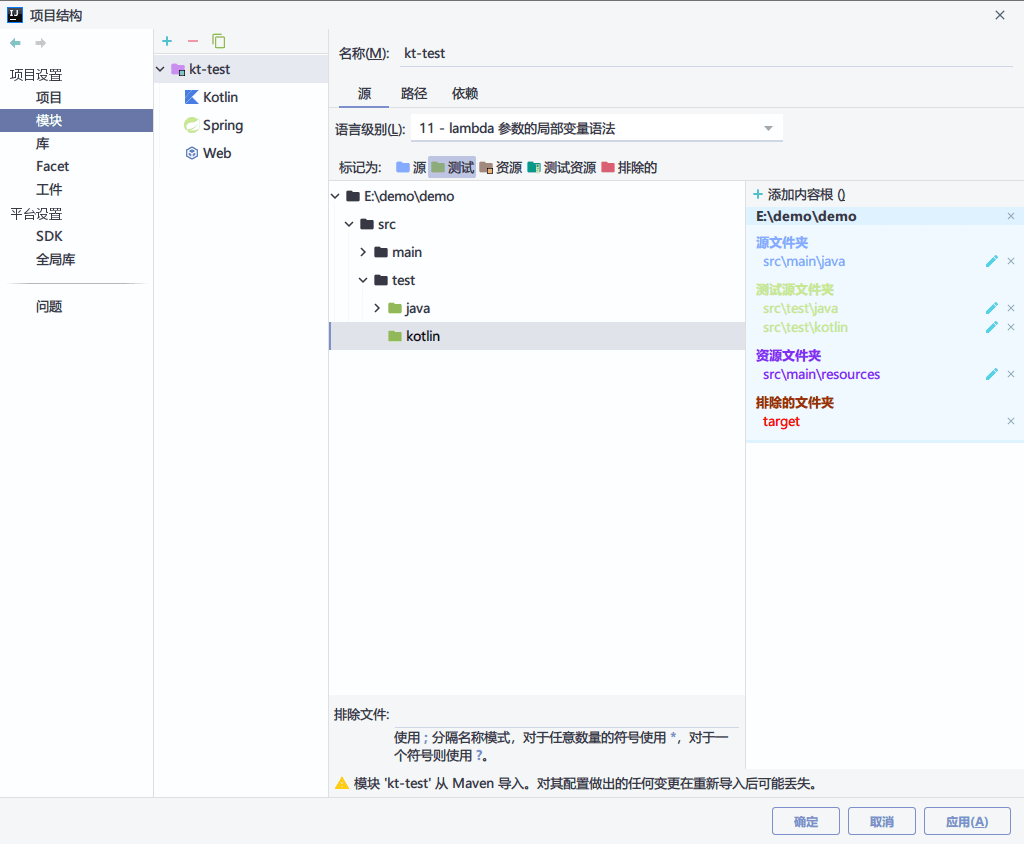 文件夹,用于存放 Kotlin 的测试代码(直接在 java 文件夹里写应该也可以,不过还是规范一点好),然后将 kotlin
